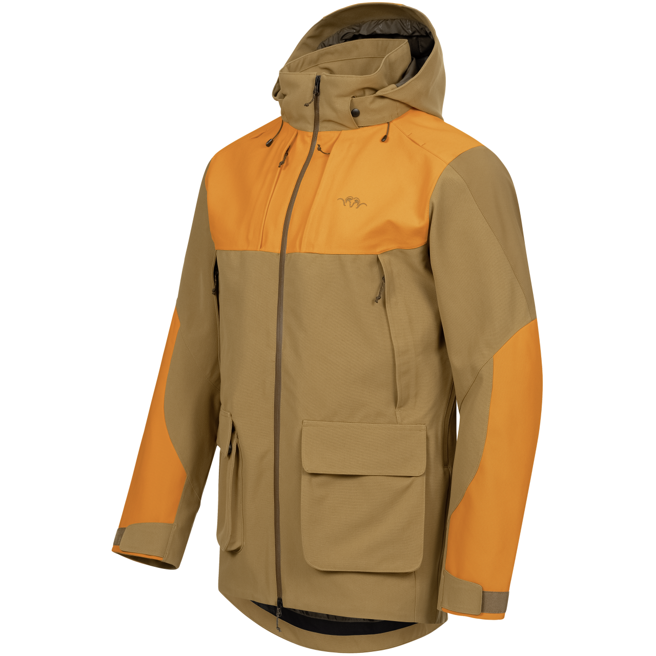 Die Farbkombination von rubber braun und blaze orange macht diese Jacke zu einem echten Hingucker. Die auffällige Farbgebung verbessert zudem die Sichtbarkeit im Gelände, wodurch Sie von anderen Jägern besser gesehen werden können.