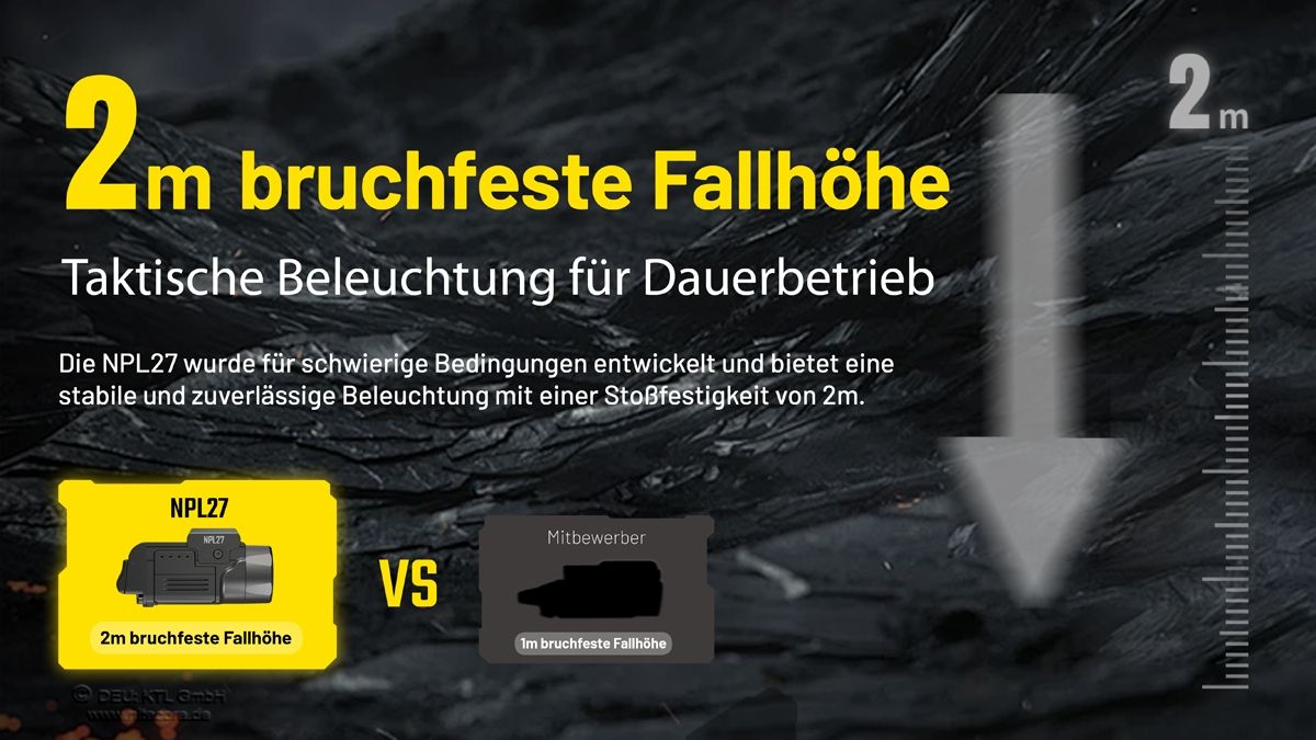 - Hohe Lichtleistung: Mit einer maximalen Lichtleistung von 400 Lumen bietet die Nitecore Waffenleuchte NPL27 eine hervorragende Ausleuchtung für Ihr Ziel.